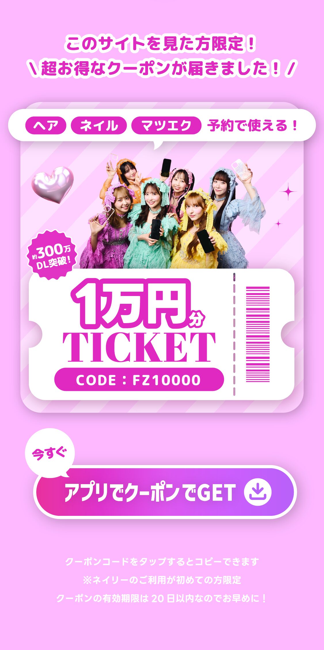 ・ネイリーを退会した場合、本キャンペーンによって発行されたクーポンも利用することができなくなります。また、その後にネイリーに再登録をしたとしてもクーポンの再発行は行われません。予めご了承ください。